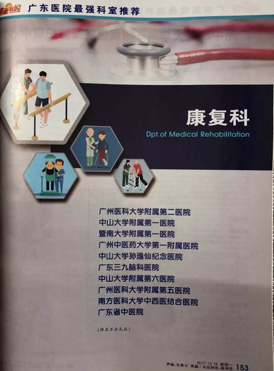 为了给患者就医、医院学科发展提供权威指引,从2017年7月起,广州日报报业集团“健康有约”工作室发起首届“广东医院最强科室推荐”活动,榜单涵盖了广州、珠海、佛山、茂名等地三级以上医院46家医疗机构,各家医院拿出自己最强的科室与同行进行PK,从人才梯队、技术与服务、科研与学术、诊疗疾病结构与患者来源、设备配置五个一级指标和近百个二级指标,最终选出广东医院科室中的尖子生——42个专科(其中8个亚专科)、300多个“最强”科室,来自广医五院的康复医学科、泌尿外科、产科正是其中的3个。