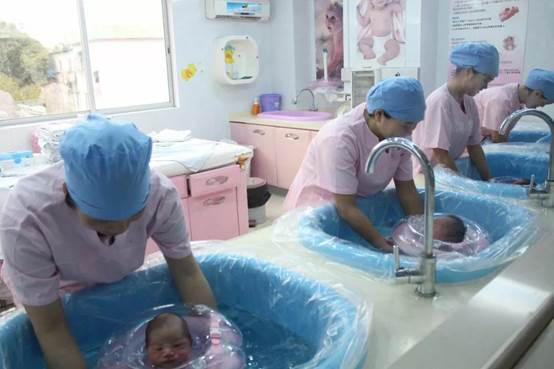 爱婴区实施整体护理,包括产后按摩技术、催乳技术、新生儿游泳、新生儿抚触、新生儿听力筛查、代谢疾病筛查以及预防接种。