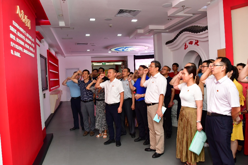 参观过程中,医院党委书记李蕃俊同志带领大家重温入党誓词。通过铿锵有力的铮铮誓言,让大家进一步增强了党性认识和担当意识。