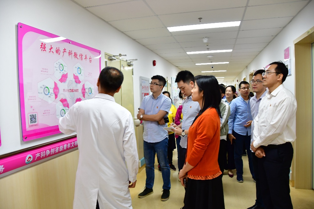 调研组一行首先来到我院产科,实地查看创建省级青年文明号的现场,产科青年文明号负责人带领大家有序参观,并做现场讲解。
