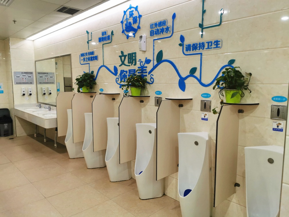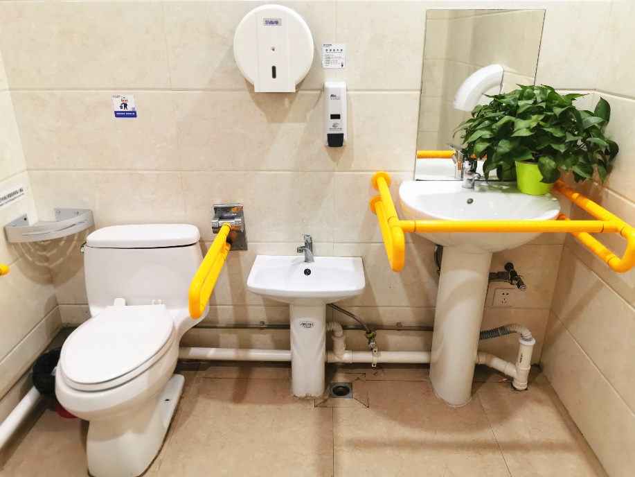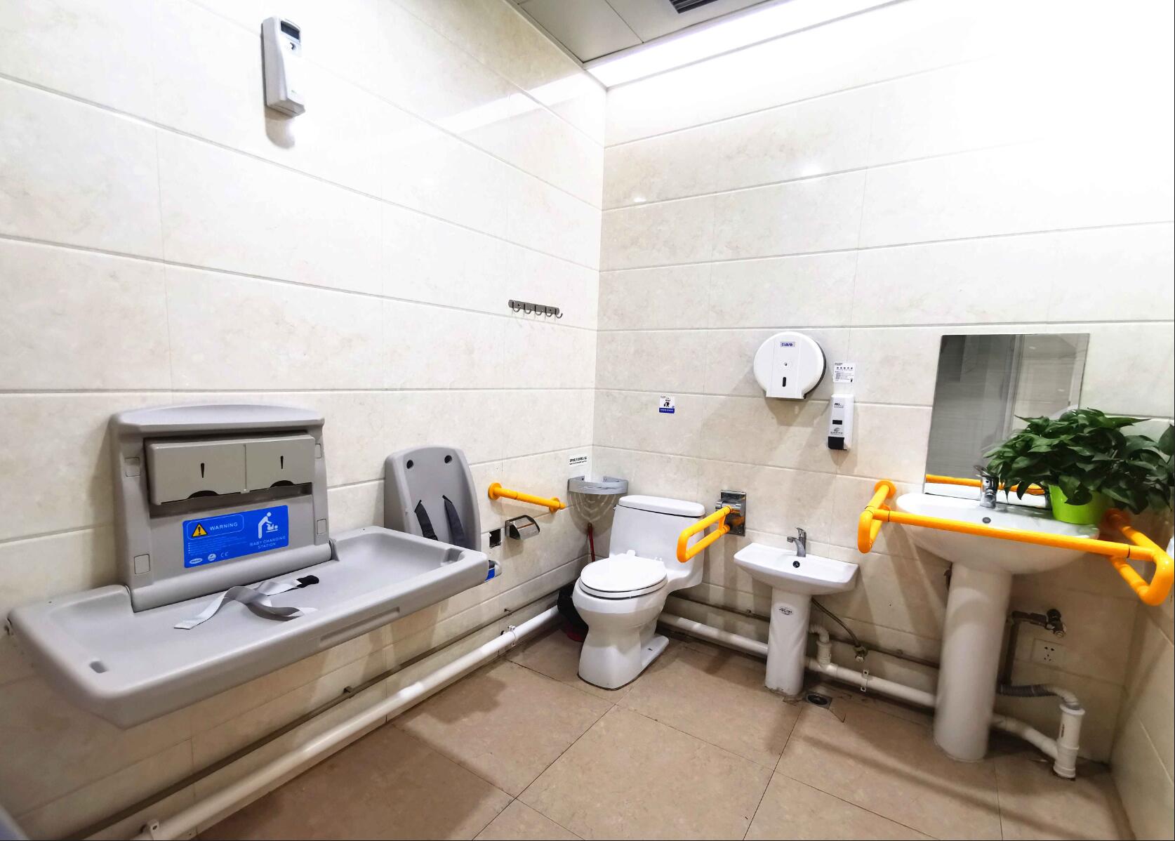 最齐全:除了女厕间、男厕间、小便器这些厕所“标配”,添置了各类扶手、立镜、挂勾、置物架、干手机等设施设备。除此以外,还设置有专门的“第三洗手间”,设置有无障碍坐便器、无障碍洗手池及儿童洗手池 儿童小便器、儿童坐厕位、儿童座椅、尿布更换台等“人性化”的便民设施。