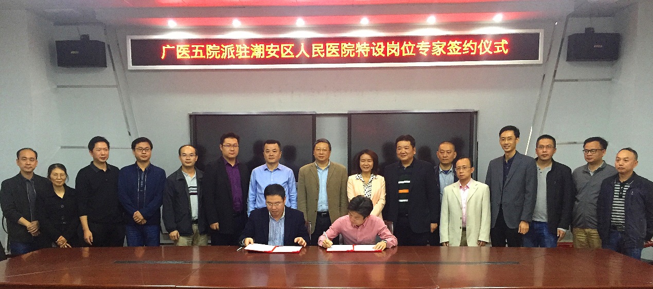 活动中,潮安区人民医院李淳南副院长与广医五院张斌主任分别代表双方正式签约,确定广医五院派驻特设岗位专家的协议。