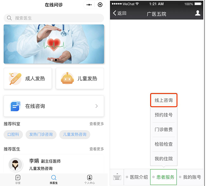 疫情期间,为引导患者规范就医,减少人员聚集,避免交叉感染,广医五院搭建云诊室,并于2月5号开通发热患者在线问诊功能。