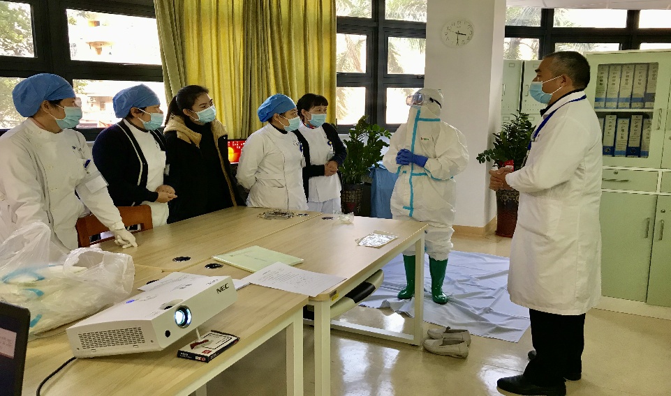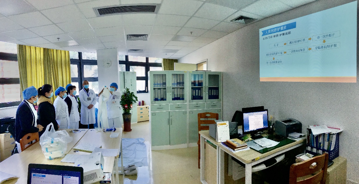 疫情严峻,只有努力与时间赛跑,才能跑赢这场防控阻击战。大家为了把防控技能知识学熟学透,利用下班时间加班培训,认真练习穿戴防护服,全部穿戴好,只露出两只眼睛,有的同事把个人穿戴好防护服的都拍了照,可是谁知道哪个是自己呢,有时大家在休息时翻出相片,看了都忍俊不禁。每次培训完毕,黄美兴主任都要反复交待,要求大家认真解读发布的最新新冠病毒肺炎的防控基本知识,坚持做好个人防护。