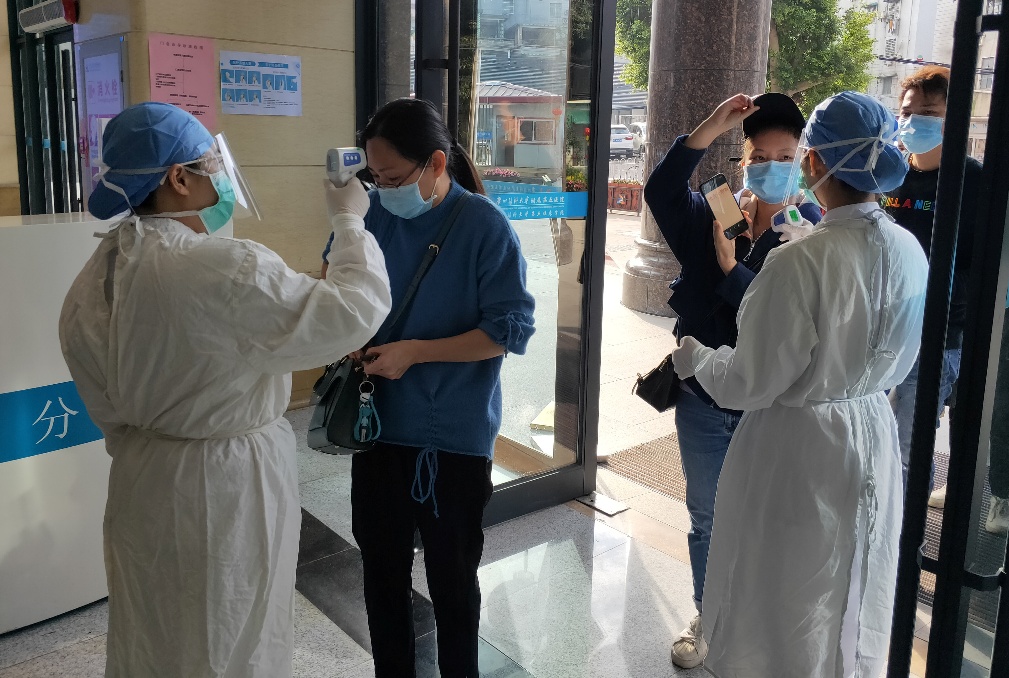 预检分诊的护士姑娘们一天的工作看似很“简单”,对前来医院所有进入门急诊(住院)的患者、陪人必须经过大门口、预检分诊台二次检测体温,流行病史询问、协助患者登记新型冠状病毒感染的肺炎筛查表,进行分诊。患者有发烧的、有呼吸道症状的、有湖北居住史和湖北旅游史的,有接触新型冠状病毒肺炎患者或新型冠状病毒肺炎疑似患者的,做好登记,送患者到发热门诊就诊,并与发热门诊护士做好交接,由发热门诊安排患者做筛查新冠核酸检测。患者如没有呼吸道症状的、没有发热的、没有咳嗽的、没有居住史、旅游史及接触史的,就指引病人到相关专科科室诊治。分诊的工作从早到晚这个工作程序,春节假期人流少,最少一天也要排查2000余人次;节后患者慢慢就增多,多的时候有近3000人次,其中有1500多位门诊患者。