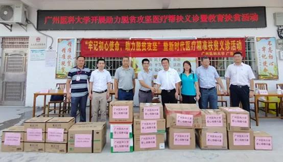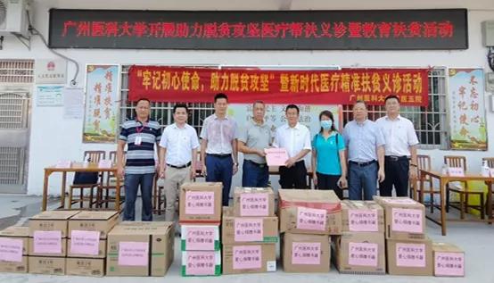 广州医科大学党委自2016年起,结对帮扶高岭村120户建档立卡贫困户,选派驻村干部入村,修建广医路,打通乡村发展脉络。坚持“走下来,送上去”,安排医疗队和“三下乡”社会实践活动多次深入镇村开展义诊和健康科普活动,以“健康扶贫”和“教育扶贫”对接“精准扶贫”,利用医疗和教育资源努力缓解贫困户“因病致贫”“因病返贫”“因学致贫”问题。在帮扶过程中,与当地医院、学校、村委、帮扶家庭结下深厚情谊。
