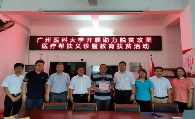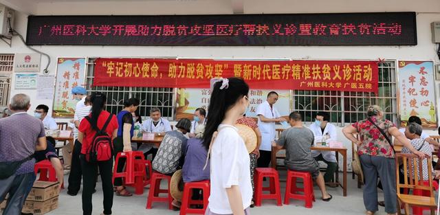 2020年是全面打赢脱贫攻坚战收官之年,也是全面建成小康社会目标实现之年,为贯彻落实习近平总书记在决战决胜脱贫攻坚座谈会上的重要讲话精神和全省决战决胜脱贫攻坚推进会部署要求,聚焦夺取脱贫攻坚战全面胜利的目标,促进村民身体健康、提高身体素质,7月15日,广州医科大学党委常委、副校长方灿辉带队,学校工会副主席、扶贫办主任冯卫东,组织部常务副部长赵海波,学校附属第五医院党委书记李蕃俊、副院长江先汉及专家医疗团队、学校扶贫办相关人员一行到访学校定点扶贫单位——清远市佛冈县汤塘镇高岭村开展助力脱贫攻坚医疗帮扶义诊暨教育扶贫活动。汤塘中学校长姚志强、高滩小学校长冯灿星及高岭村两委干部、驻村干部等参加活动。