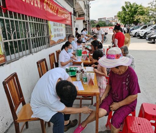 同时,广医五院医疗专家团队还在村里组织开展义诊活动。尽管当天是酷暑天气,村民们都早早地就到现场排队就诊,专家们免费为村民们进行现场诊治和血糖血压检测等健康检查,还耐心仔细地开展健康咨询和相关疾病预防知识讲解,现场还免费派发药品,义诊活动收到当地村民的一致欢迎和好评。
