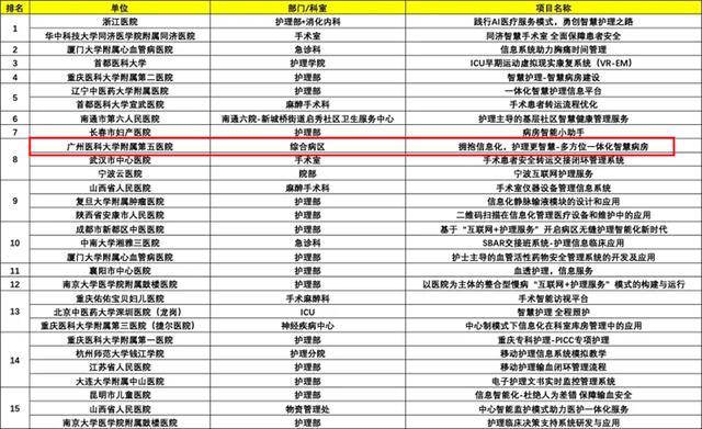 在《中国护理管理》杂志社主办的首届全国智慧护理优秀案例(视频)评选活动中,广医五院从全国近200医院脱颖而出,综合病区护理团队报送的视频作品——《拥抱信息化,护理更智慧,多方位一体化智慧病房》斩获佳绩,成为广东地区唯一的获奖单位!