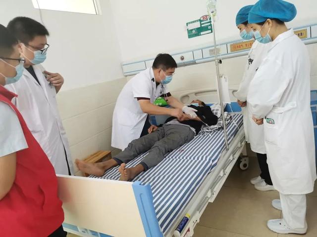 义诊期间,广医五院专家团队更送医疗进病房。来自普通外科和神经内科的专家为当地镇卫生院综合住院病区的住院病人进行临床带教查房,现场为住院的疑难患者进行会诊。