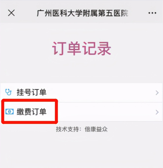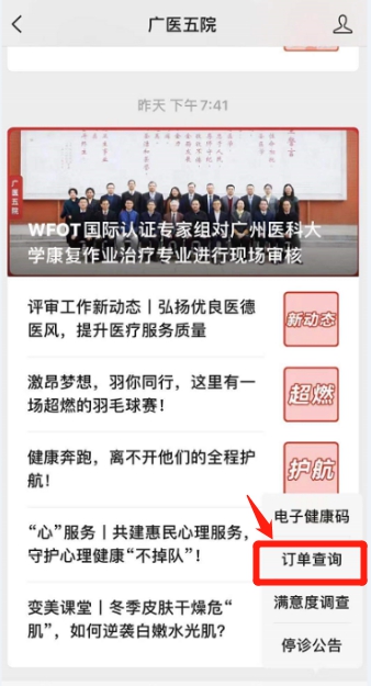 01 完成缴费3分钟后,进入广医五院微信公众号,点击我的账号进入订单查询;