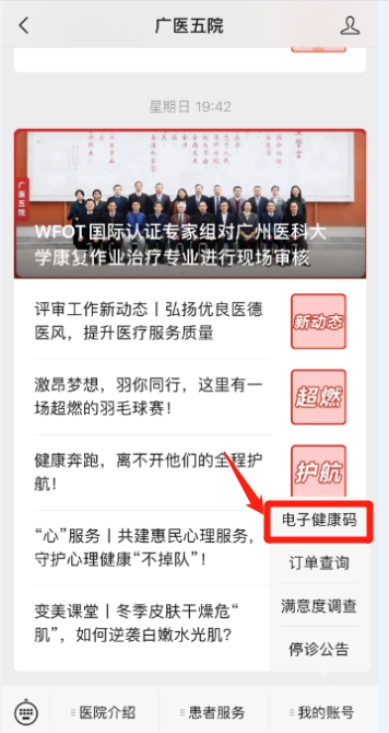 02 进入广医五院微信公众号,点击我的账号进入电子健康码;