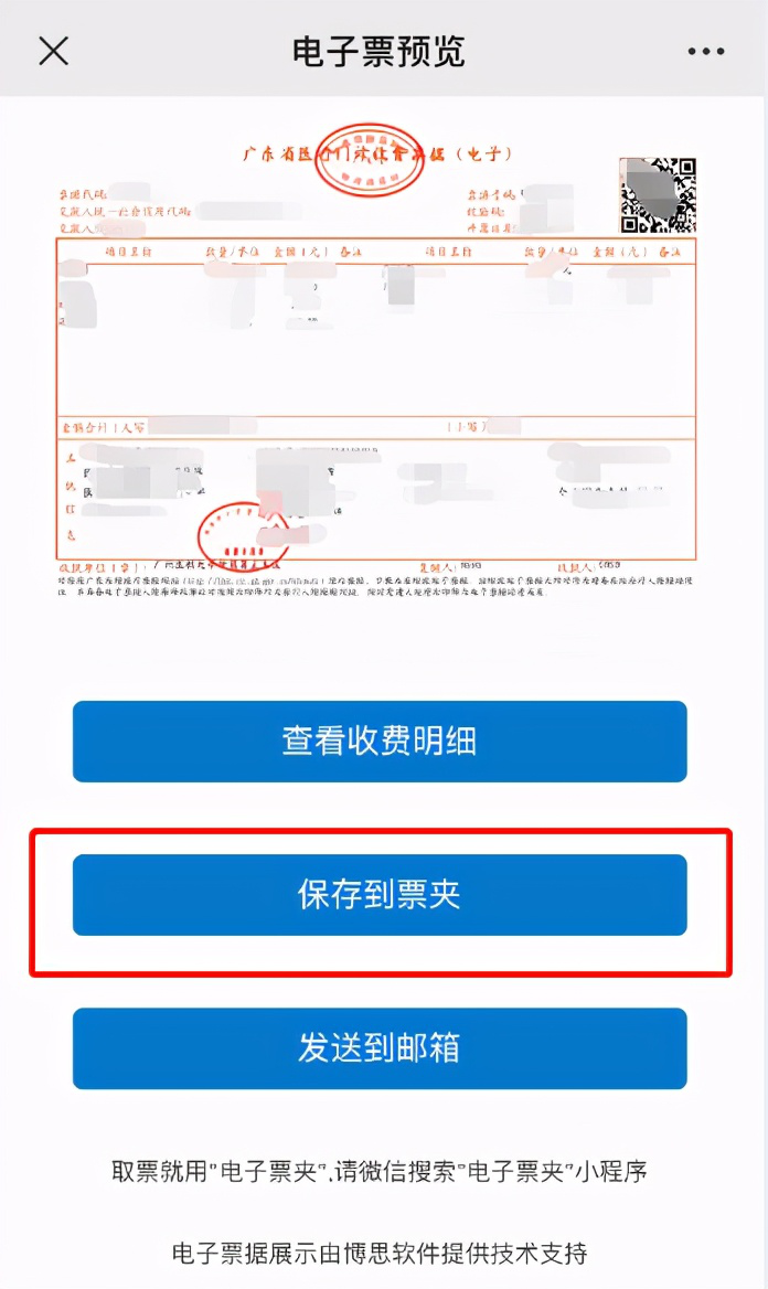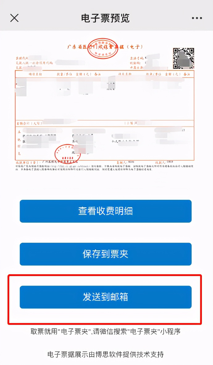 02 输入邮箱地址后点击发送,票据即可保存到邮箱。