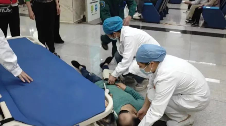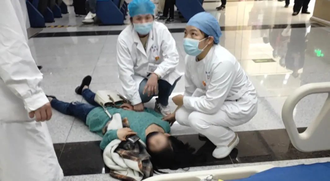 张女士没有想到,只是陪同丈夫来院就诊,竟会发生如此惊险的一幕。事情发生在1月26日下午15点55分,40岁的张女士陪护丈夫来到广医五院办理入院检查后,独自一人来到位于医院临床教学综合楼1楼门诊大厅的西药房等待时,突然四肢抽搐晕厥,并直挺挺的倒地。