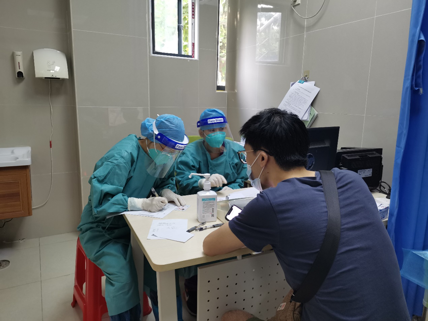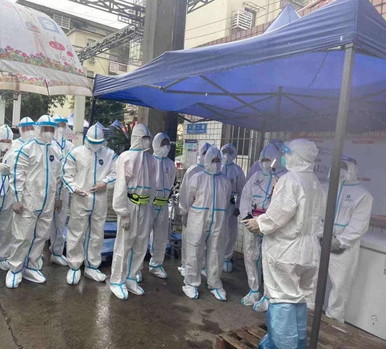 6月4日,黄埔区启动全区全员核酸检测工作。广医五院党委立刻展开部署,在全院发起倡议,由500名医务人员组建的核酸采样队火速集结、披甲上阵,奔赴包括永和街在内的多个社区,迅即有序推进大规模核酸检测。同时,院领导班子分组深入一线,坐镇指挥,各战线形成强大的战斗合力。