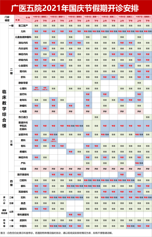 门诊出诊安排详见上表,出诊如有变更,请以现场实际排班情况为准。