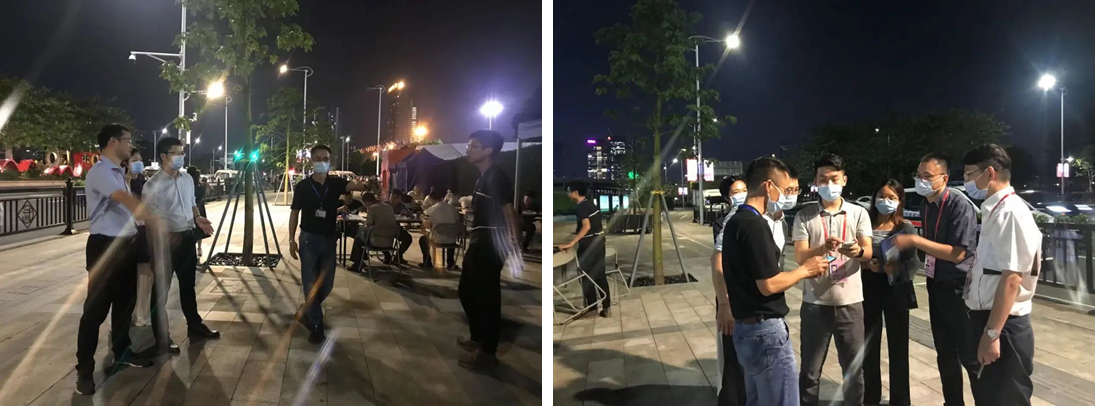 10月14日晚,参与与配合广州市卫建委第130届广交会医疗救治和核酸检测组、海珠区核酸检测组相关负责人指导核酸采样点布场。