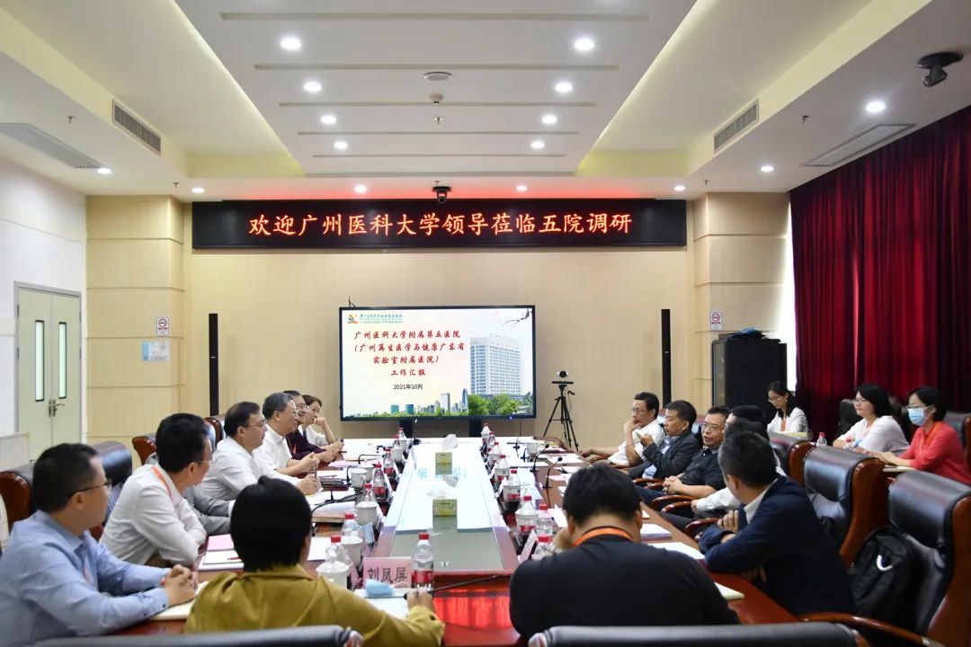 10月29日上午,广州医科大学党委书记唐小平、副校长陈小兵、学校办公室主任汪志标、人事处处长黄宇翔、后勤校产管理处处长张少生、医院管理处副处长李章生等一行莅临广医五院,开展现场调研工作。医院全体领导班子及相关科室负责人陪同参与调研。