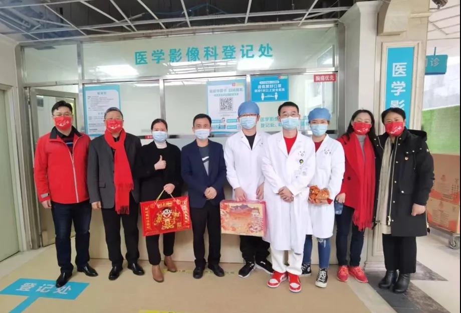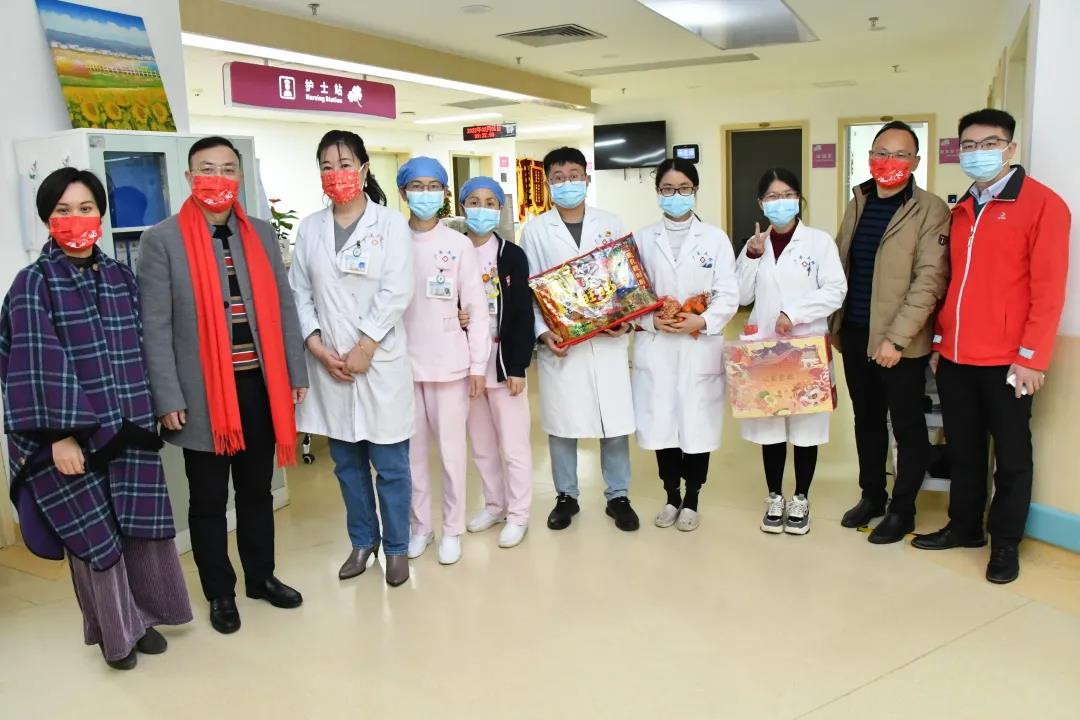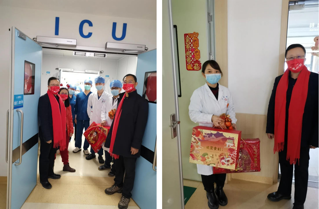 大年初一上午,医院领导及相关职能科室负责人就分为四组,深入全院各科室送去新年祝福。每到一处,领导们都与坚守工作岗位的职工亲切交流,详细询问了节日期间疫情防控、医疗护理、后勤保障、消防安全等方面的情况,送上了医院为职工们精心准备的新年大礼包,并致以节日美好的祝愿。