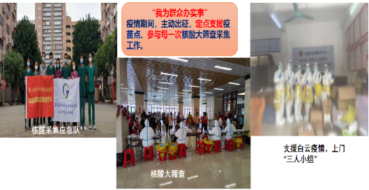 新冠疫情期间,放射治疗科广大号手响应医院号召,组织多人多次支援白云区、黄埔区核酸检验工作。其中,刘兵在2021年前往荔湾区广钢医院、广州市第八人民医院坚守抗疫60余天,受到医院的嘉奖。科室号手们既保证了科室业务的开展,也参与支援每次的大规模核酸筛查,包括深入到深圳、东莞、中山等周围城市。另外,科室党员也身先士卒,发挥党员先锋模范作用,积极参与所在社区的抗疫志愿者工作,为助力打赢疫情攻坚战贡献青春力量。