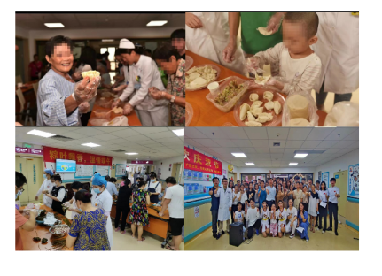 每逢大型节假日,放射治疗科都会精心准备好各种小礼品、节目、应节美食,与患者共度佳节,让患者真正体会到医患一家亲。新年伊始元旦节时,奉上一碗热气腾腾的汤圆;端午嘉节时,医患共同包上粽子,体会“粽叶飘香、温情端午”的节日氛围;中秋团结时,医护团队安排上“寄相思、传真情”的晚会,给患者带来回家的感觉。放射治疗科团队不仅在医术上“治疗”患者,总是在平常的日子里“安慰”患者,真正将“医患一家亲”的精神贯穿在科室中。