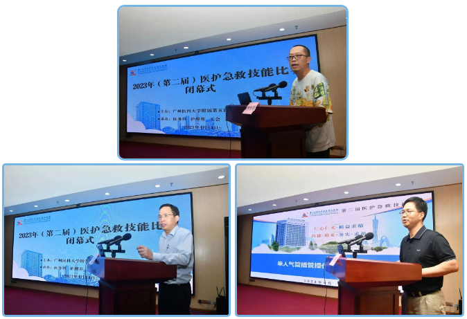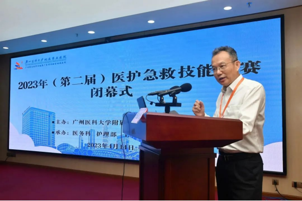 在总结讲话中,陈益民副院长充分肯定了本次比赛成效的基础上, 希望大家可以认真总结推广技能比赛活动中形成的好经验、好做法,着力营造浓厚的活动氛围,推动活动常态化、实效化开展,从而实现全院职工“人人掌握急救技能,学以致用”的目标,保障患者安全,共同努力提高医院急危重症患者的成功救治率。
