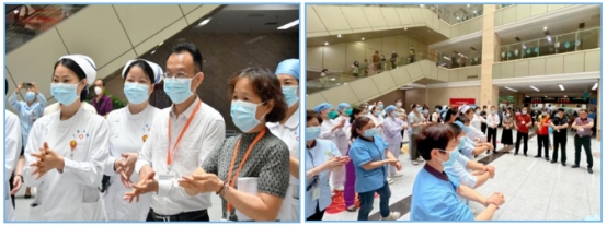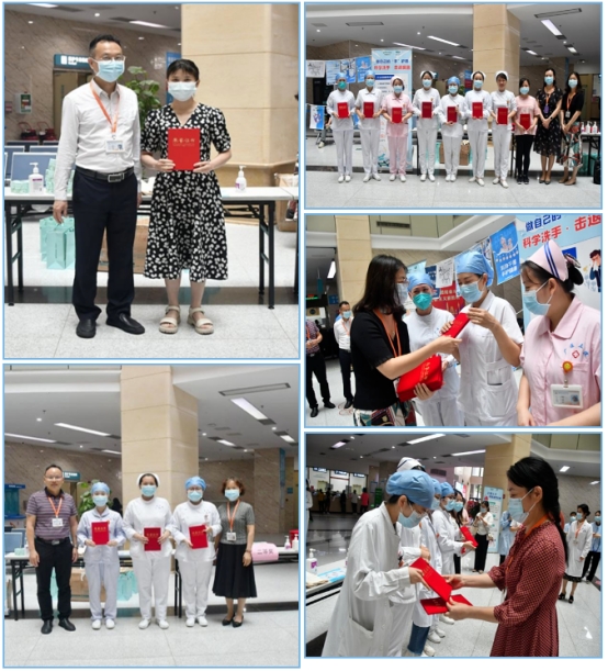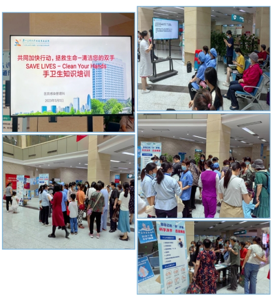 为进一步增强医护人员感染防控意识,提高手卫生依从性,5月5日“世界手卫生日”当天,广医五院在医院门诊大厅举办了手卫生日主题活动,在陈益民副院长的带领下,医院相关职能科室负责人和骨干,现场演绎了“七步洗手法”操作,带领现场的医务人员和就诊市民群众一同学习如何正确洗手。营造多部门联合、全院知晓、全员参与,不断提升全员手卫生意识,加强院感防控意识的良好氛围。