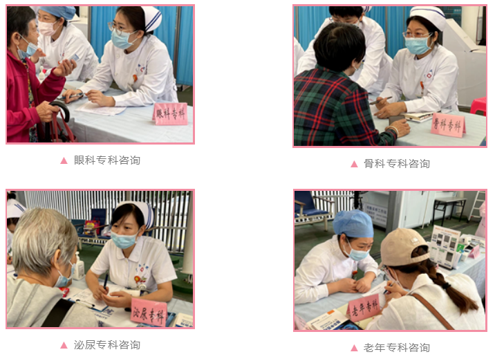 义诊团队由67名资深护理专家组成,来自助产专科、营养专科、老年专科、康复专科、静脉治疗专科、伤口造口专科、血透专科、催乳专科、儿科、泌尿专科、骨科、肿瘤专科、心血管等22个护理专科的专科护士,为广大市民带来了全方位的护理指导。