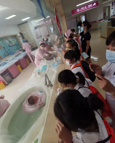 第二天的行程是门诊部、产科爱婴区、儿童肿瘤病房。在爱婴区孩子们隔着玻璃窗全程观看了护士姐姐为宝宝沐浴、清洁肚脐,离开的时候正好遇见一位刚出生从手术室送回爱婴区的宝宝,孩子们看着襁褓中的宝宝,感受到了生命的神奇。再回到学习室时一个个全神贯注地听产科的医生阿姨讲授生命的成长与诞生。“我真的好感动啊”一个小女孩说。