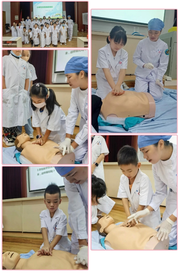 对此,体验营特邀急诊医学科的老师为小朋友们进行“急救知识”科普、“心肺复苏技能”指导。小朋友们纷纷上手,体验心肺复苏的“魔力”。