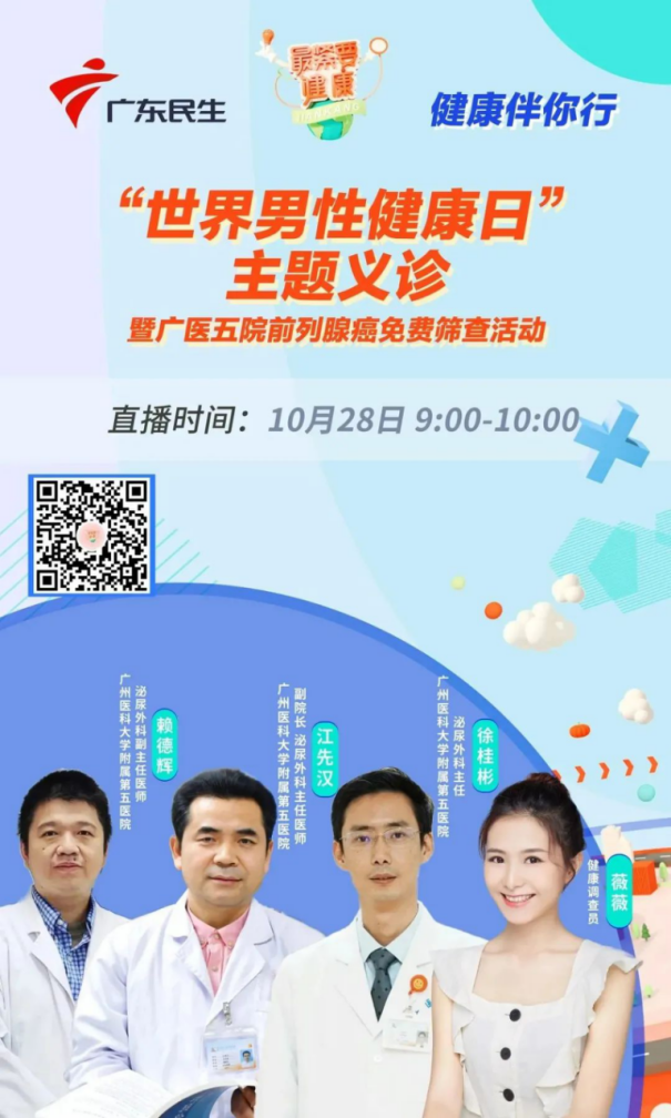 10月28日是世界男性健康日,为响应男性关爱日,加大对男性健康的宣传力度,广医五院联合广东广播电视台民生频道、黄埔区大沙街社区卫生服务中心开展“世界男性健康日”大型主题义诊暨广医五院前列腺癌免费筛查启动活动,通过开展“男性健康日”义诊宣传活动,为群众在家门口看病就医创造便利条件。