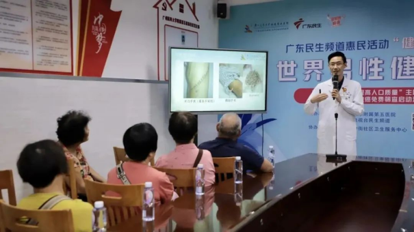 活动当天,泌尿外科的三位专家教授为患者群众准备了精彩的科普讲座。广东广播电视台民生频道《最紧要健康》栏目,采取现场线上直播,科普内容丰富,讲者一是广医五院副院长江先汉教授,讲题为《前列腺癌早期筛查》;讲者二是泌尿外科主任徐桂彬教授,讲题为《泌尿系结石治疗及预防》;第三讲者是泌尿外科赖德辉博士,讲题为《前列腺增生诊断及治疗》。专家们用通俗易懂的语言、形象生动的图片及动画,深入浅出的将泌尿外科常见病、多发病给大家详细讲解,并解答相关疑问。