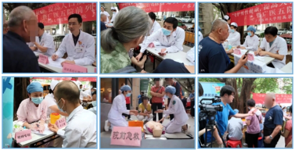 现场摆放了各种男性健康知识科普宣传手册,还举行了AED培训和应急知识科普讲解,吸引了众多居民前来咨询。各医护人员热情地对各位群众进行个性化的健康指导,并发放相关科普手册。针对有需要的患者,就如何进行盆底肌锻炼、膀胱功能锻炼、指导排尿日记和饮水计划等为患者做出解答。义诊现场还免费测血压、测血糖,提供泌尿系彩超检查及前列腺癌早期筛查。