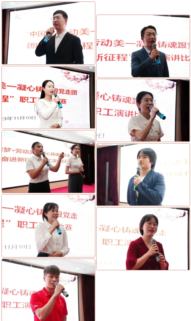 2023年11月10日下午,由医院办公室、工会、团委联合举办的“中国梦·劳动美——凝心铸魂跟党走 团结奋进新征程”职工演讲比赛顺利召开。本次演讲比赛是“中国梦·劳动美——凝心铸魂跟党走 团结奋进新征程”系列活动之一。来自医院12个部门工会的选手同台竞技,生动讲述大家立足岗位、建功新时代的生动实践,充分展示出广医五院广大职工踊跃投身医院高质量发展建设的昂扬精神和奋斗姿态。