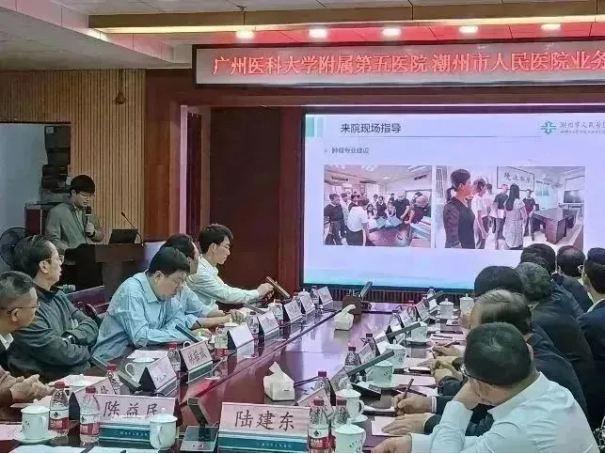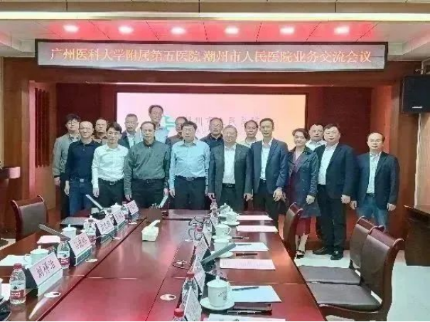 12月2日上午,广医五院与潮州市人民医院医联体业务交流会在潮州市人医举行。广医五院党委书记李蕃俊,潮州市人民医院党委副书记、院长孙光裕率领导班子成员,五院专家团队与潮州市人民医院相关科室主任参加会议。