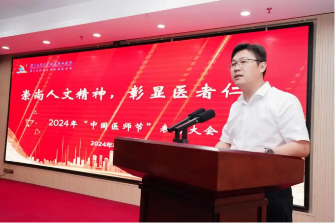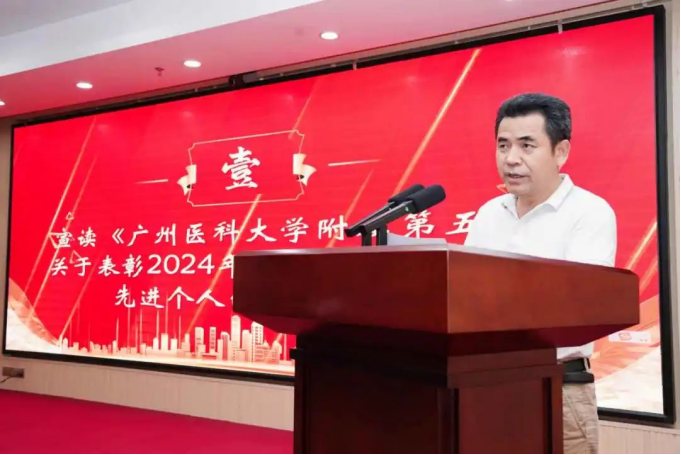 表彰大会分四项进行,首先由党委副书记江先汉宣读《广州医科大学附属第五医院关于表彰2024年度“中国医师节”先进个人的决定》文件。