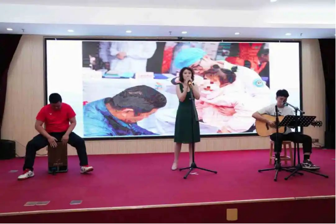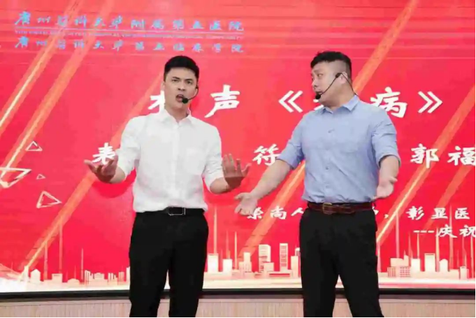 表彰大会结束后,医务工作者、“医二代”、相声演员给大家带来了歌曲、相声、朗诵、合唱等精彩纷呈的文艺演出,用别样的方式传达医务工作者在平凡岗位上诠释“医者仁心”的奉献情怀。