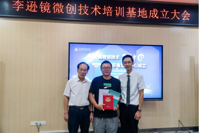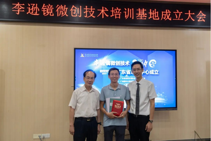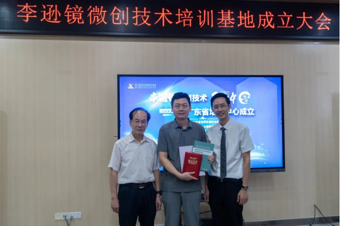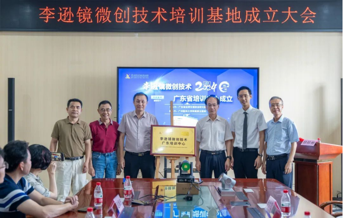 随后,医院党委曾杨滨书记,医院党委江先汉副书记,泌尿外科李逊教授、徐桂彬教授、冯钢主任医师,广东省泌尿生殖协会夏明义秘书长共同为“李逊镜微创技术广东省培训中心”揭牌。