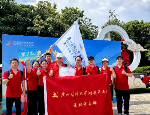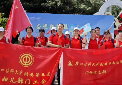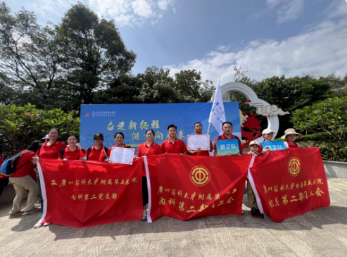 为庆祝中华人民共和国成立75周年,营造浓厚热烈的国庆气氛,并进一步增强医院广大职工的健康水平,激励广大职工以饱满的精神气和奋发有为的进取精神,9月28日,在这个秋风送爽的时节,广医五院党委在风景秀丽的油麻山,举办了一场“奋进新征程 健步向未来”喜迎国庆健步行活动。广医五院党委副书记江先汉、纪委书记卢幼君、副院长余冬冬;新龙镇四级调研员覃德兴出席活动。广医五院各党支部两两配对,组成了8支队伍,共约200位党员参加了活动。
