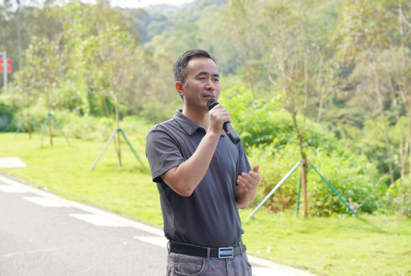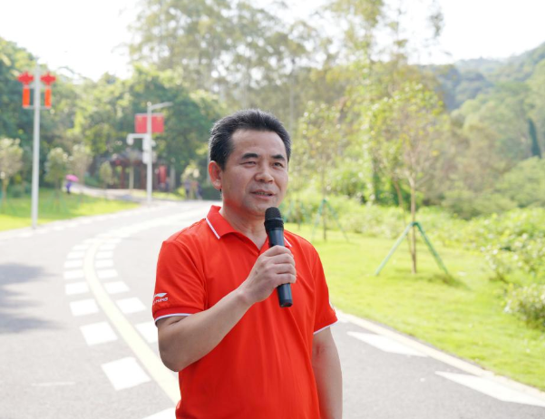 广医五院党委副书记江先汉在活动上发表讲话,他表示,在这个周末和国庆前夕,我们来到433多米高的油麻山,它不仅是黄埔、同时也是广州老八区最高山,希望我们广医五院,也如油麻山一样,立足广州,深耕黄埔,面向世界。