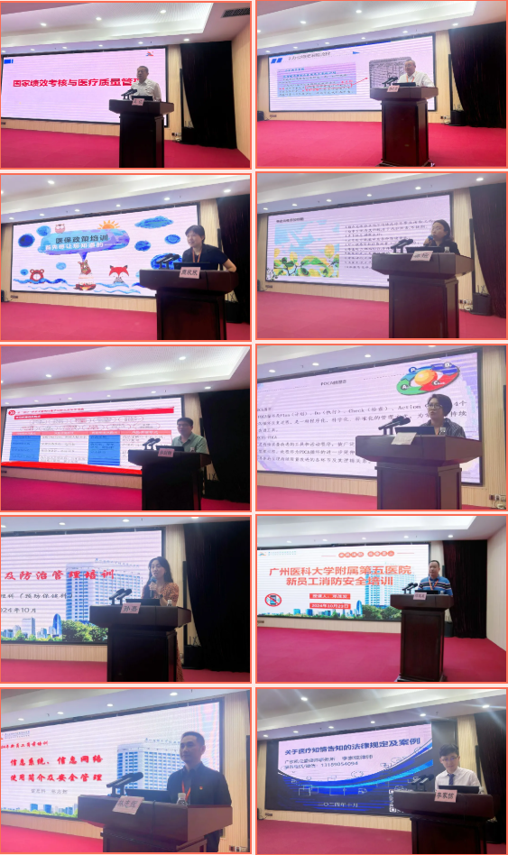 10月23日上午,广医五院2024年新员工岗前培训正式开课,医院党政领导班子、各党支部书记、行政职能科室负责人出席岗前培训开班仪式。