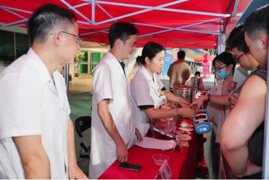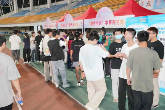 除此以外,现场还有运动修复区、特色疗法区、运动理疗区、营养补给站、本草养生堂等众多互动体验区,现场可体验针灸、推拿、拔罐等中医特色疗法,还有营养学专家进行运动后电解质水配方指导和抗炎饮食餐盘指南;在志愿者引导下,市民群众还在现场了解、触摸、辨识常见中草药,了解其性味与功效。专家还分享了运动前后的食疗养生知识,了解如何根据自身体质进行调理,实现“药食同源”。