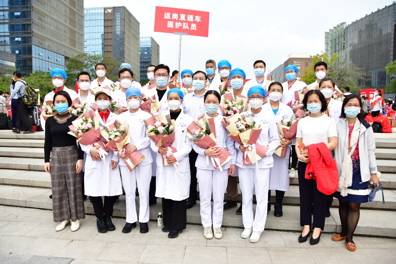 2020-04-03广医五院医疗队全力护航,29辆赴鄂“返岗直通车”顺利返程