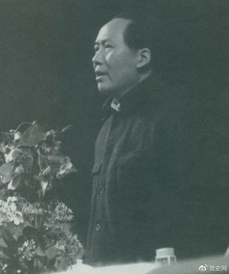 ▲ 1945年6月11日,毛泽东在中国共产党第七次全国代表大会上致闭幕词。