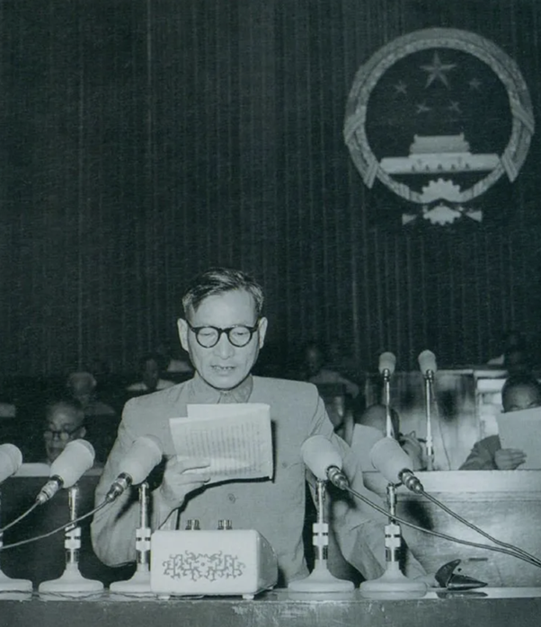 ▲ 1955年7月,陈云在一届全国人大二次会议上作坚持和改进粮食统购统销工作的报告。