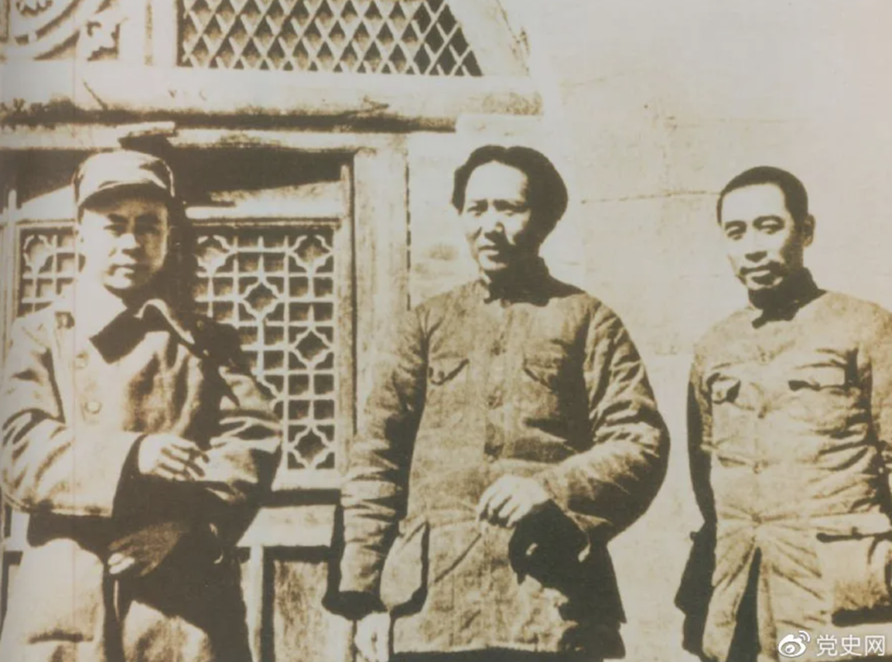 ▲ 洛川会议上组成了新的中共中央革命军事委员会,毛泽东为书记(亦称主席)。这是毛泽东、周恩来和任弼时的合影。