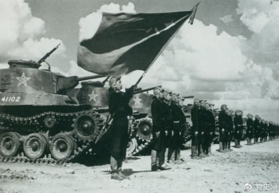 ▲ 1950年9月,中国人民解放军装甲兵领导机构在北京成立。图为坦克部队阵容。