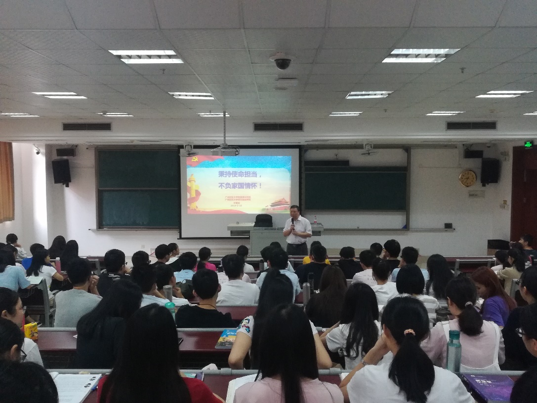 2019年5月16日上午,一场热血沸腾、激情澎湃的课程在广州医科大学番禺校区开课。广医五院党委书记李蕃俊为第五临床学院18级全体学生带来了一节主题为“秉持使命担当,不负家国情怀!”的主题思政课。
