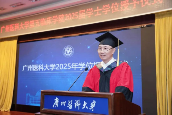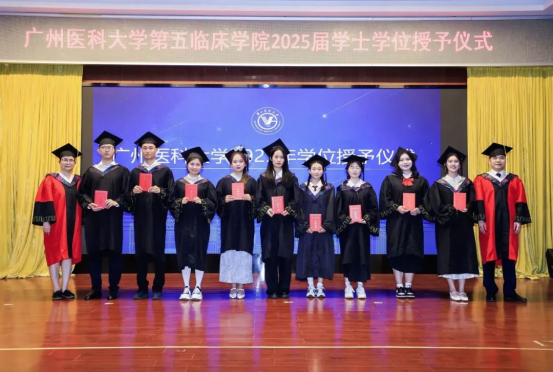 6月25日下午,广州医科大学第五临床学院2025届学位授予仪式在番禺校区举行,101名本科生顺利毕业,踏入人生新阶段。