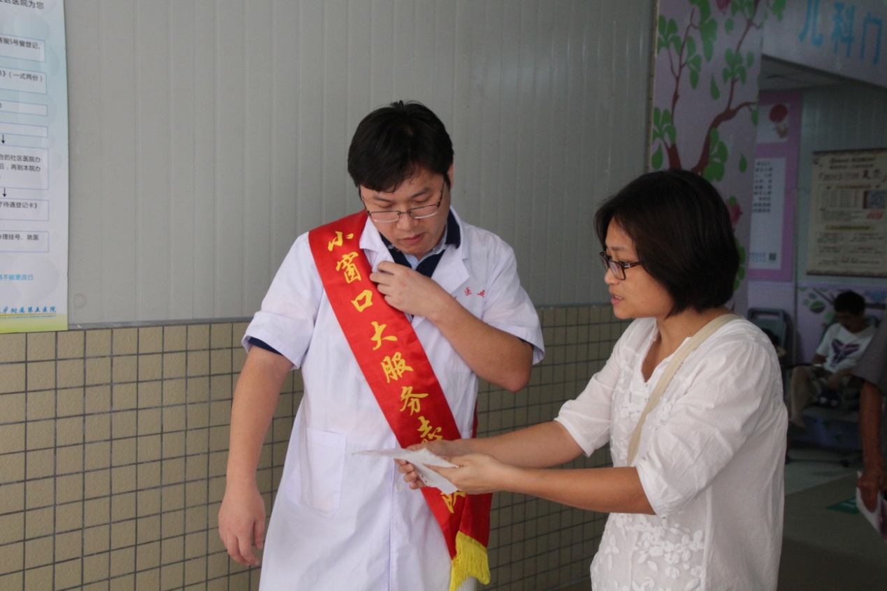 为了响应2015年“优质服务”活动,缓解由于新大楼施工围蔽给患者就诊带来的不便,为患者提供更加便捷、优质的服务,我院办公室等15个职能部门齐动员,从4月下旬开始每天轮流派出2名工作人员到门诊进行导诊服务。